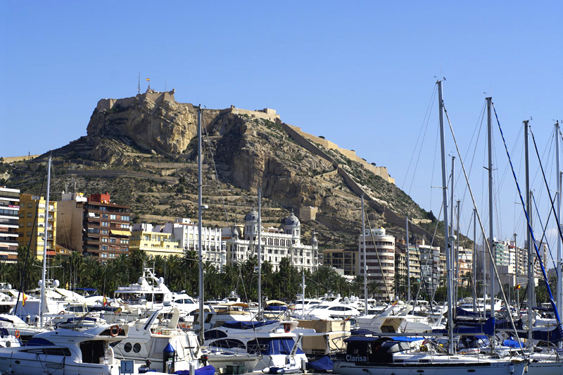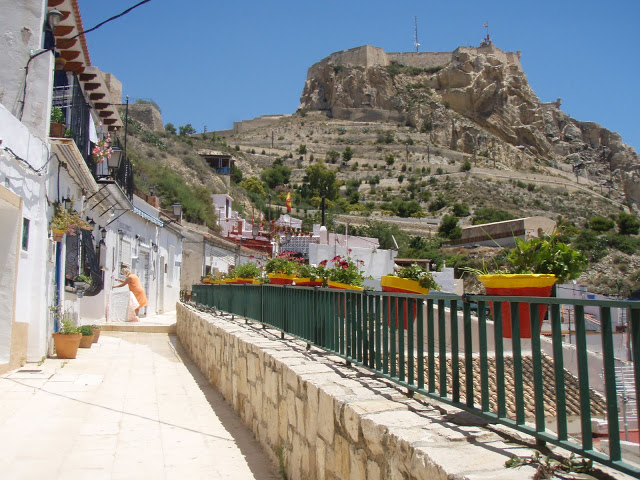 Начнем с банального, с того, что можно обнаружить в любом путеводителе или даже просто бесплатной карте города, которую можно получить в любом офисе "турист инфо" - с замка Санта Барбара на горе Бенакантиль, возвышающейся над городом и пляжем на 169 метров.