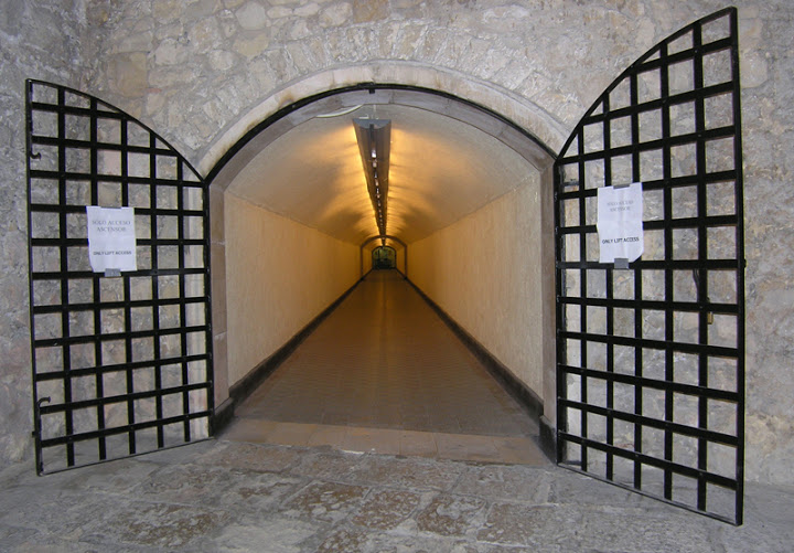 Вход в лифт из замка с "первого этажа" (из здания на среднем уровне, а есть еще на почти верхнем уровне):