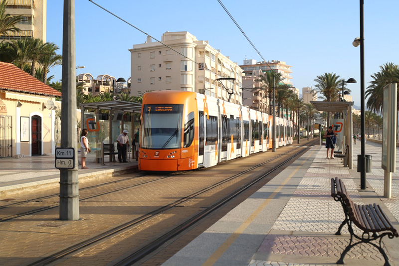 Линия удивительного транспорта, называемого здесь tren-tram, то есть трамвай-поезд, проходит от Аликанте до Дении, что составляет около 100 км, по большей части вдоль побережья (кроме участка от Кальпе до Дении).