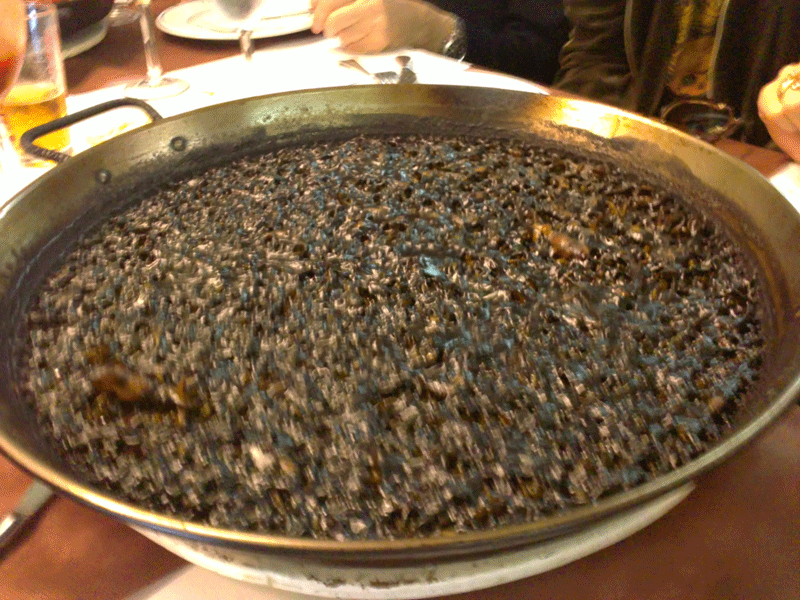 - Paella negra - "черная паэлья", рис в ней окрашен в черный чернилами каракатицы, дающими насыщенный йодистый запах моря. С морепродуктами.