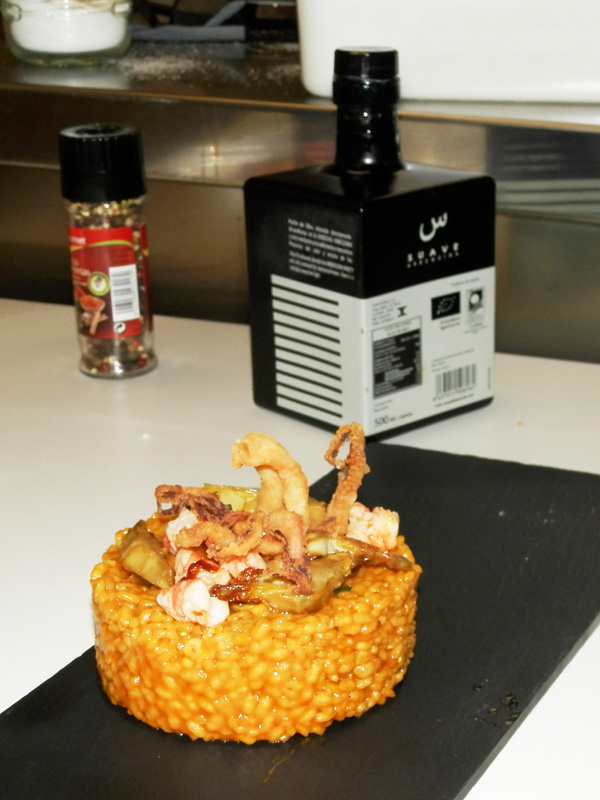 Вариации на тему: красная паэлья и рис с фуа и белыми грибами: