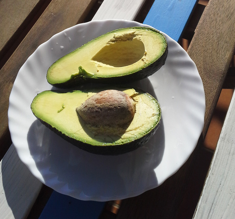 Авокадо, кстати, это фрукт! Важный нюанс: он не созревает на дереве, не становится мягким, дозревает уже будучи собранным, так что купить твердый авокадо - это нормально, дайте ему долежать. Спелые авокадо очень вкусны, чаще всего его просто нарезают, посыпают солью и перцем и едят с хлебом. Можно намазать на бутерброд вместо масла - под колбасу, хамон или кусочек красной рыбы.