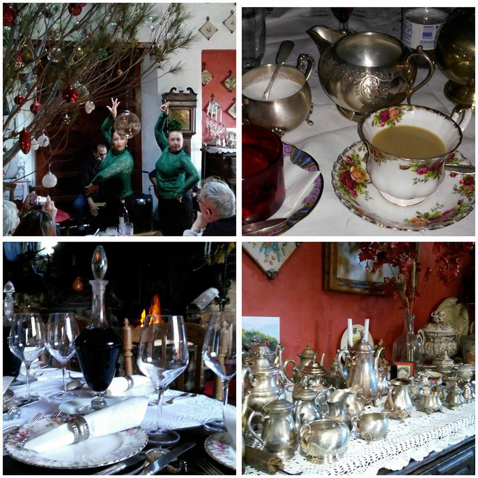 По выходным здесь устраивают обеды: приготовленная на живом огне еда, поданная на красивых расписных тарелках, среди завитых подсвечников, кофейников и графинов. Зимой в каминах горит огонь. Без ограничения наливают свое экологическое красное вино - пей, сколько душа просит. Кстати, после него голова не болит!
