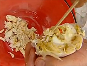 - И начинается процесс, занимающий некоторое время - добывание мяса. Это удобно делать длинной деревянной палочкой.