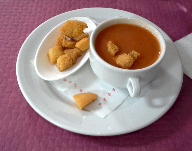 Гаспачо - довольно известное испанское блюдо. Оно не является типично аликантийским, пришло с юга, из Андалузии, но гаспачо стало столь популярным, что летом его можно встретить повсеместно. Это, по сути, суп-пюре из томатов, огурцов, также добавляют лук, чеснок, оливковое масло, уксус, соль, воду, белый хлеб. Иногда - сладкий перец.