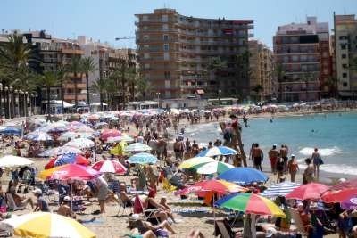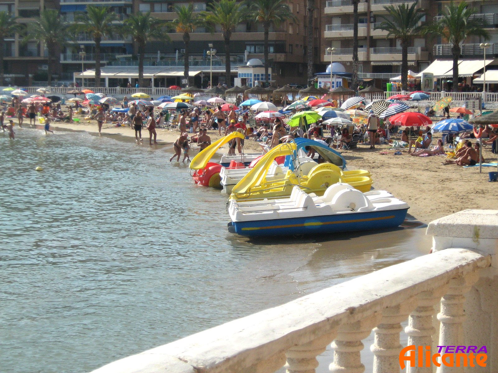 Городской пляж с золотистым песком, 388 х 22 метра. Высокая загруженность.