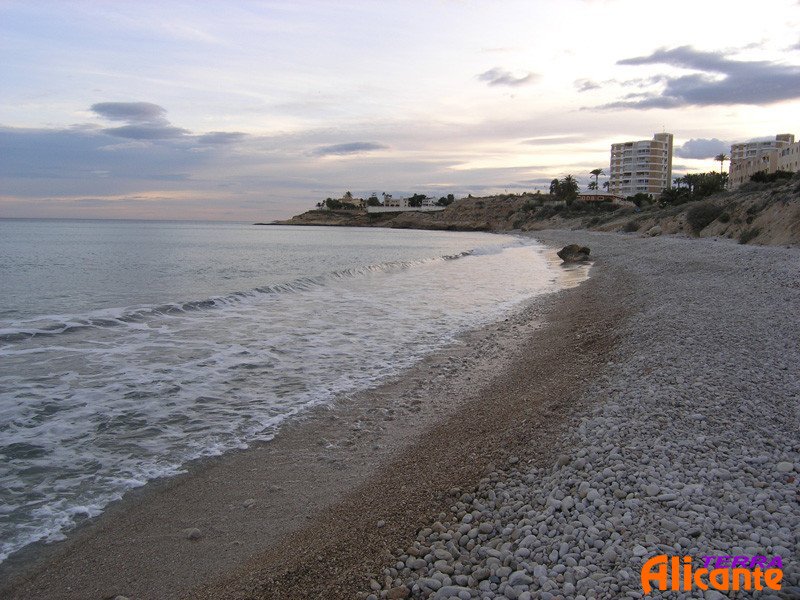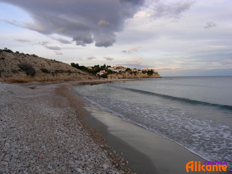 Длинная полоса с галькой на берегу, но песчаным дном. Рядом - урбанизация (жилой комплекс) Alkabir.