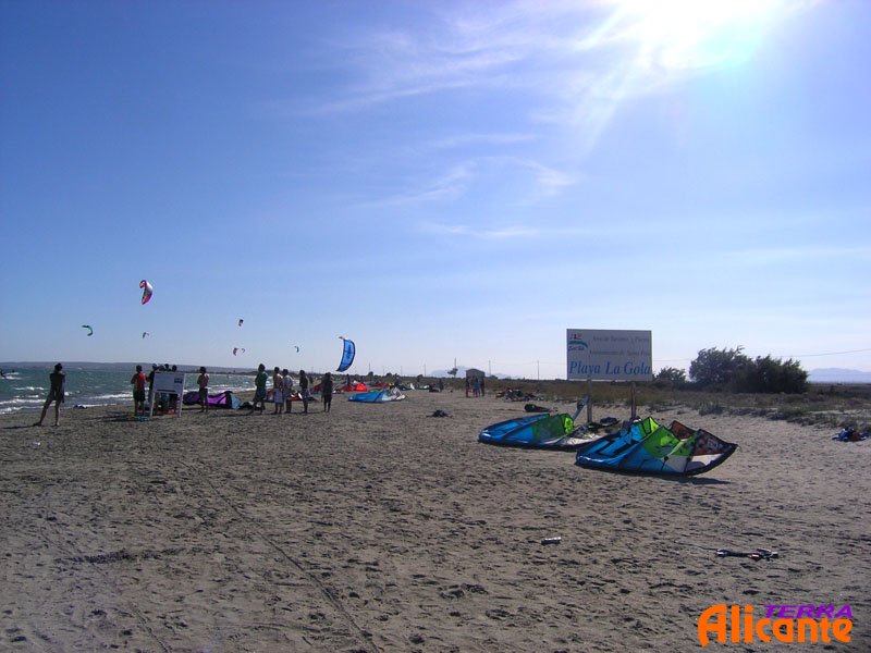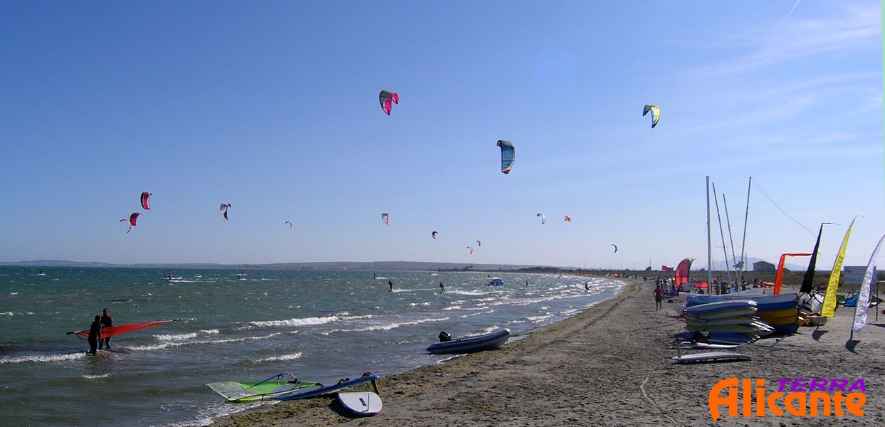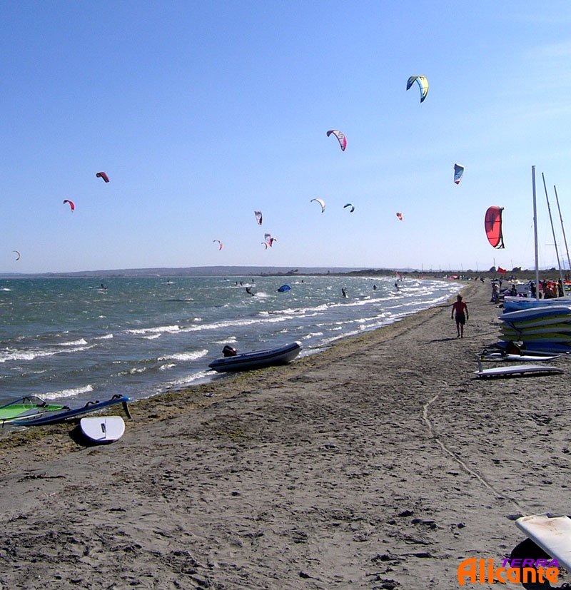 Тут же - школа виндсерфинга Parres Centre и кайт-серфинг круглый год (вдоль большинства пляжей в сезон кататься нельзя). Плохо подходит для купания - водоросли и камни. Зато на берегу - прекрасный заповедник, удивительные соляные горы (соледобыча) и мелкий белый песок.