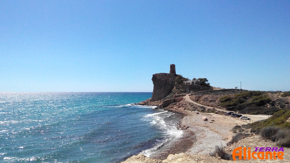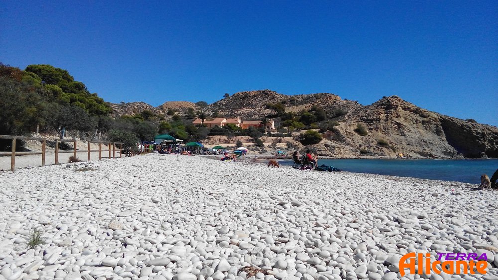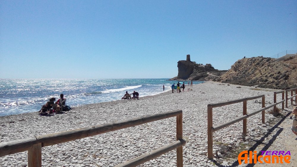 Небольшая бухта с крупной галькой, очень живописными остатками дозорной башни и площадкой для пикника в левой части. Сюда приводят и собак тоже, особенно если это не июль-август, но испанские собаки - удивительно дружелюбные существа.