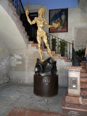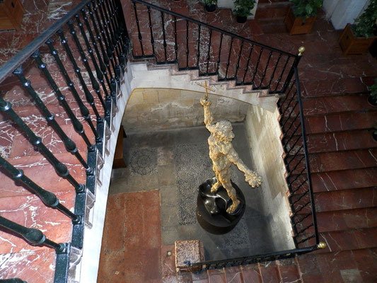 Во-вторых, там же, у подножия лестницы, привлекает взгляды пятиметровая скульптура авторства Сальвадора Дали, изображающая Святого Иоанна (San Juan). С этой скульптурой все вышло не так просто и даже местами немного скандально. Несколько лет назад в Аликанте проводилась выставка, посвященная творчеству Дали, и тогдашний владелец скульптуры прислал ее на выставку, ошибочно полагая, что Святой Иоанн является покровителем города Аликанте. Однако, после окончания выставки мэрия города по каким-то причинам не вернула скульптуру владельцу, а установила ее там, где она находится и сегодня: в холле мэрии. Ситуация была неоднозначной и неудобной до тех пор, пока организация Aguas de Alicante (местный водоканал) не выкупил статую у законного владельца, подарив затем городу, с условием, что она всегда будет находиться на том же месте, доступной для обозрения всеми желающими.