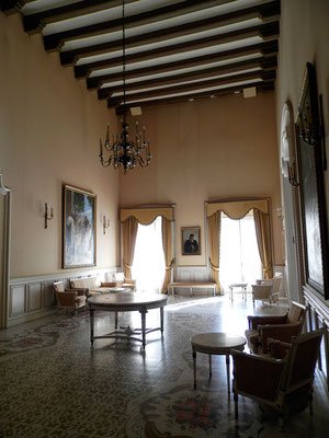 И, наконец, завершает этот небольшой променад зал заседаний, с большим столом из орехового дерева, выполненном в испанском стиле. В центре стола вырезан герб Аликанте. Стол окружен рядами сидений с двух сторон, всего тут может поместиться до 30 важных, решающих судьбы города, человек.