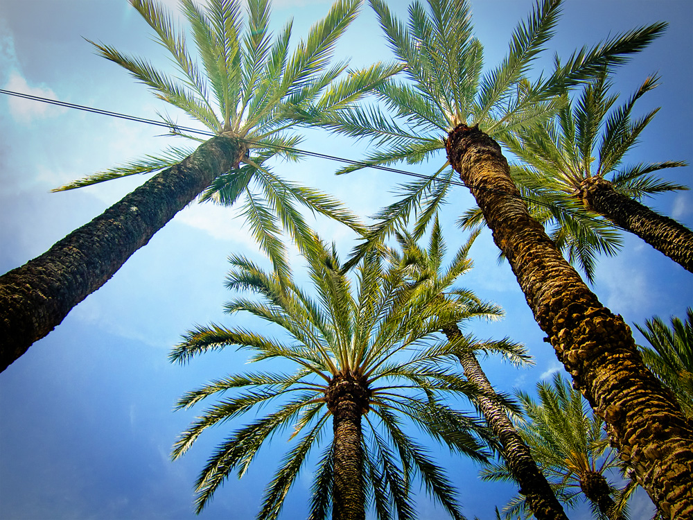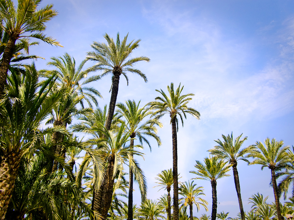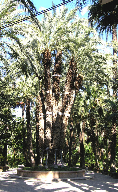 Считается, что привезли пальму в эти края финикийцы, а уже возделывать и пользоваться ее плодами научились арабы. Пальма была первым деревом, на которое обратил внимание человек с точки зрения собственной выгоды: она давала ему пищу (кокосы, финики, муку, масло, мед, вино и другие алкогольные напитки) и материалы для строительства жилища. Пальмовый сок циркулирует внутри дерева лишь в центре ствола, что делает растение устойчивым к огню. К тому же, оно очень удобно для культивирования, так как растет только вверх и не имеет ветвей, только растущие по спирали листья. Кстати, эти листья подрезаются человеком, не отваливаясь самостоятельно. Запущенная, неухоженная пальма с отвисшими засохшими старыми листьями становится похожа на стог сена.