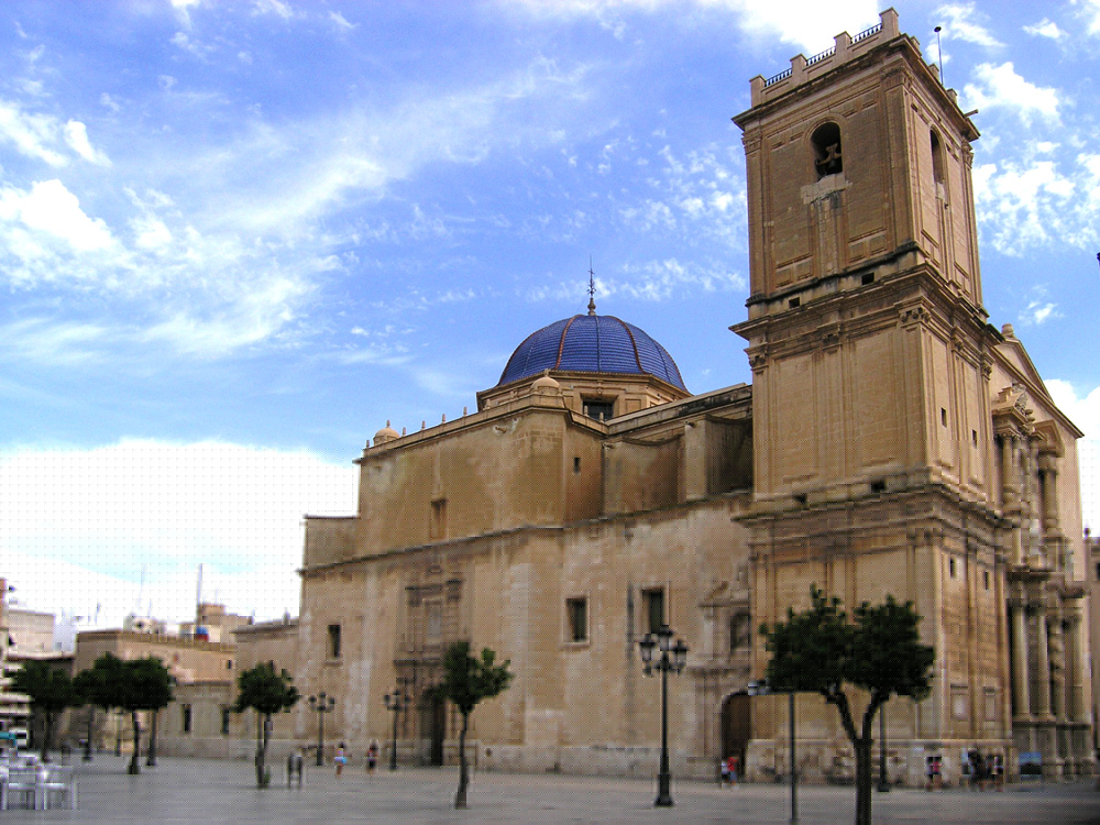 - Церковь Святой Марии (Iglesia или Basílica de Santa María) – выдающийся храм Эльче – расположен на том же самом месте, где в мусульманскую эпоху стояла главная мечеть, продержавшаяся после завоевания города до 1334 года. На ее руинах был возведен первый католический храм, на тот момент в готическом стиле, но простоял он недолго. В 1492 году была предпринята новая попытка строительства собора, однако и второй вариант постигла печальная участь – в 1672 году его смыло проливными дождями. Последняя версия церкви Святой Марии включает в себя элементы разных стилей, ее возведение заняло больше века – строительство закончилось лишь в 1784 году.