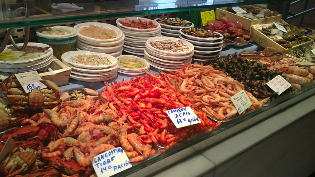 Под устрицу обязательно пытаются налить недешёвого французского вина, но всегда можно отказаться, расплатиться, взять тарелочку с морской добычей и переместиться к прилавку “Pinkleton & Wine“ по правую руку от Сорлута, специализирующемуся как раз на вине. Заказать там за вдвое меньшую сумму что-нибудь от отечественного, испанского производителя и тут же употребить. Поскольку пространство общее, никто не препятствует поеданию устриц у винного прилавка… да хоть у сырного “Mya Vandalos“, который по праву считается одним из лучших в Мадриде, или рыбного “La Casa del Bacalao“ с соответствующими тапас, которые также весьма популярны.