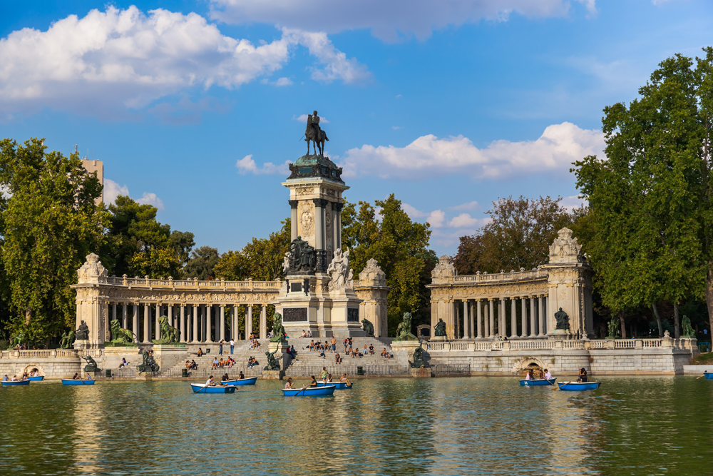 - Парк Ретиро. Мало кто из туристов осознаёт, с какой целью направляется в этот зелёный оазис в самом сердце мегаполиса. Скорее из любопытства и вряд ли для того, чтобы провести полдня в горизонтальном положении на зелёной травке, поедая принесённую с собой снедь, чем грешат окрестные жители. Но есть шанс придать походу в Ретиро осмысленность. В самом центре парка есть большой пруд, Estanque del Retiro, где можно взять на прокат лодочку и лёгким взмахом вёсел сбросить лишние калории. Осторожнее с загаром! Обгореть на воде пруда можно даже в пасмурную погоду. И не забудьте захватить с собой хлеб. Багет или два. Зрелище, которое представляют собой рыбы, выпрыгивающие из воды в попытке ухватить кусочек хлеба, наверняка станет одним из ярких впечатлений дня, особенно для детей.