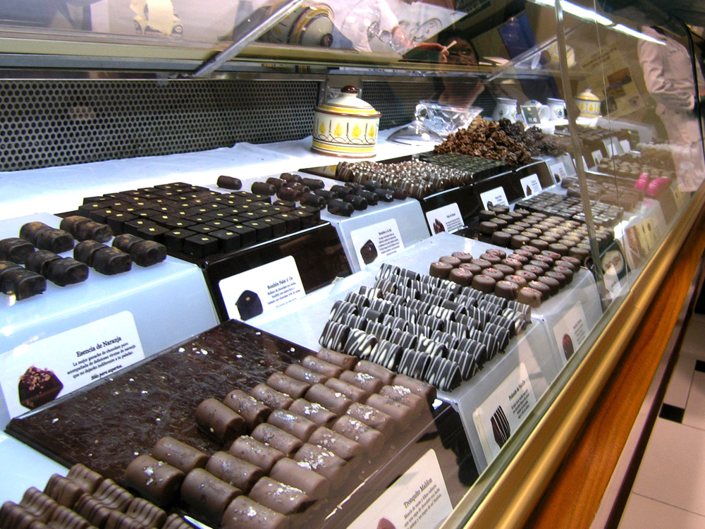 А какой запах сопровождает все время!.. Когда дело доходит до дегустации и до магазинчика, все уже ощущают немедленную потребность единения с шоколадом, включая тех, кто обычно его не любит. Шоколад, кстати, довольно вкусный, особенно хорош черный. Есть и целая стойка продукции без сахара.