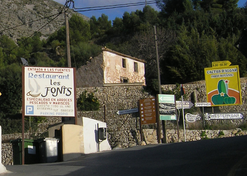 - Съезд № 65 со скоростной автомагистрали А-7, далее 800 м по N-332, на развязке следовать в направлении Callosa D’En Sarria / CV-70 / C-3318 / CV-715, по CV-715 через города La Nucia и Polop до Callosa D’En Sarria, далее по указателям «Les Fonts de l’Algar» 2,5 км.