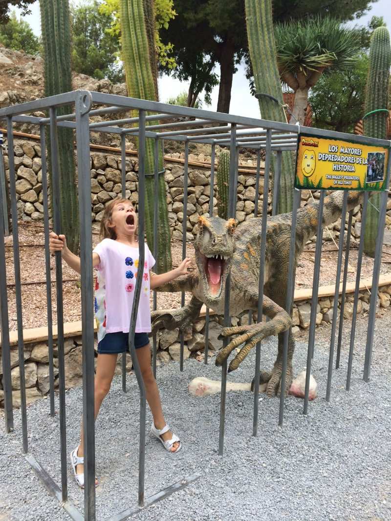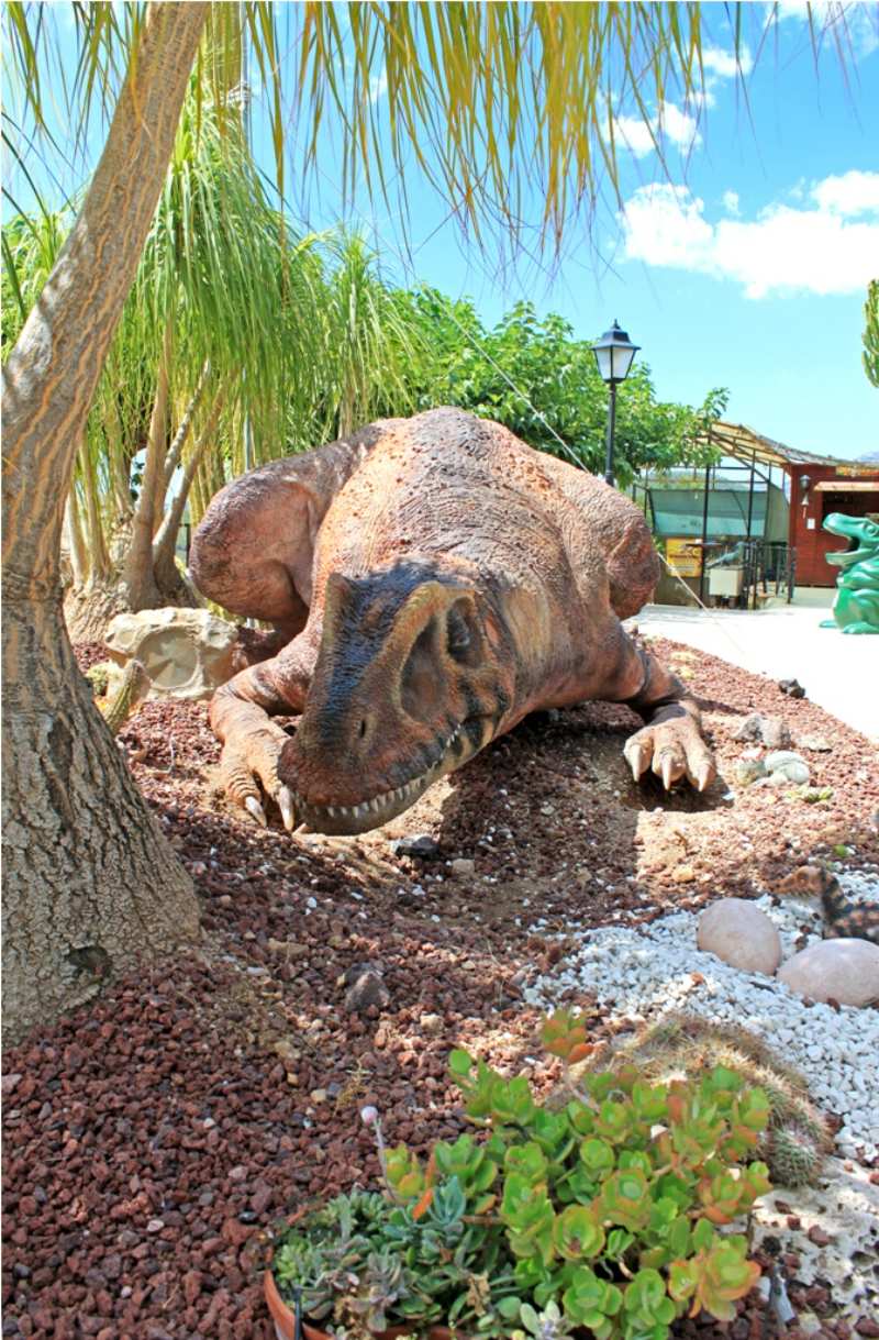 Парк с динозаврами подходит семьям с маленькими детьми (я бы рекомендовала максимум лет до 8). Это фигуры разных динозавров +/- в натуральную величину, многие из них слегка двигаются или издают звуки. Они интересно вписаны в ландшафт, а до динозавров это был парк кактусов. Уникальные кактусы остались на своих местах, здорово украшая местность.