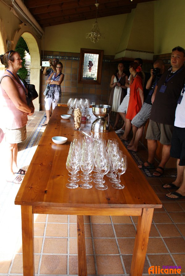 Обычно совместно с испанской (реже - английской) группой, суммарно - человек 30. Во время экскурсии мы стараемся быть чуть-чуть в стороне, чтобы переводом не мешать окружающим (специально для нас пауз не делают, поэтому получается не дословный перевод, а свой рассказ по теме, благо нам есть что рассказать). На дегустации накрывают один общий стол.